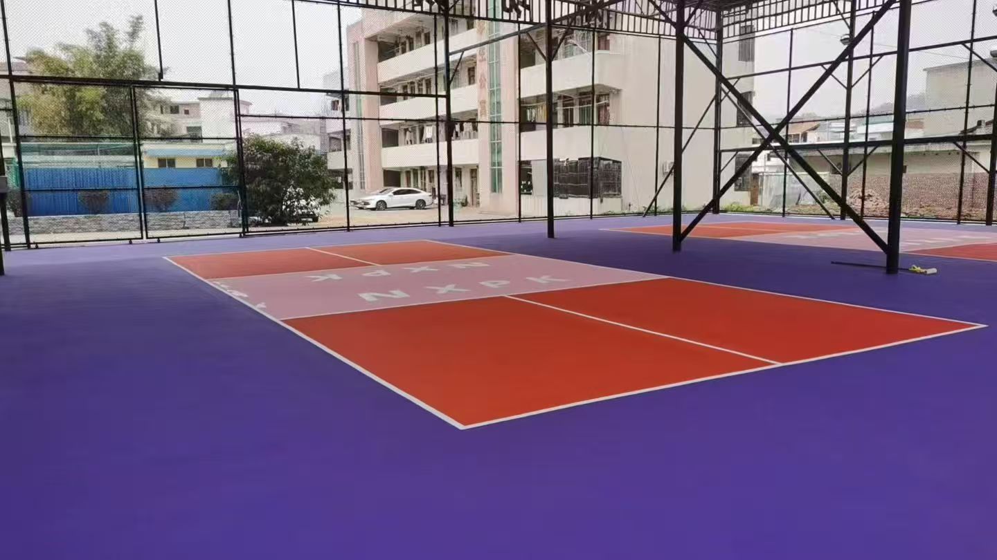 室外匹克球场地采用丙烯酸地面铺设,性价比高场地耐磨不易掉色。